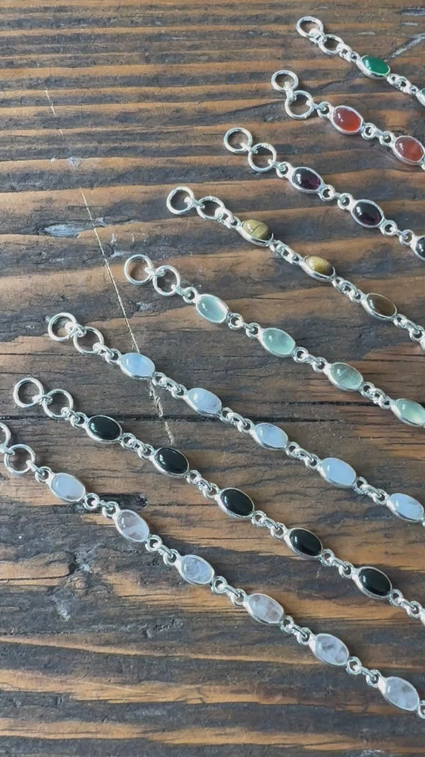 This soft and soothing bracelet features 13 oval-shaped Prehnite gemstones set in solid 925 sterling silver. Known for its gentle green hue, Prehnite is often associated with peace and healing. A subtle yet unique piece—perfect for everyday wear or a thoughtful gift.