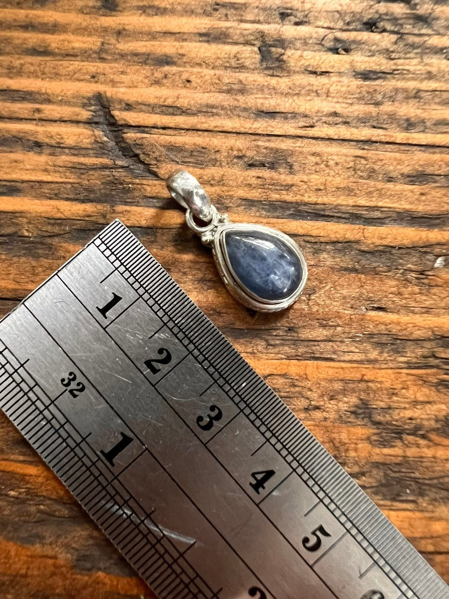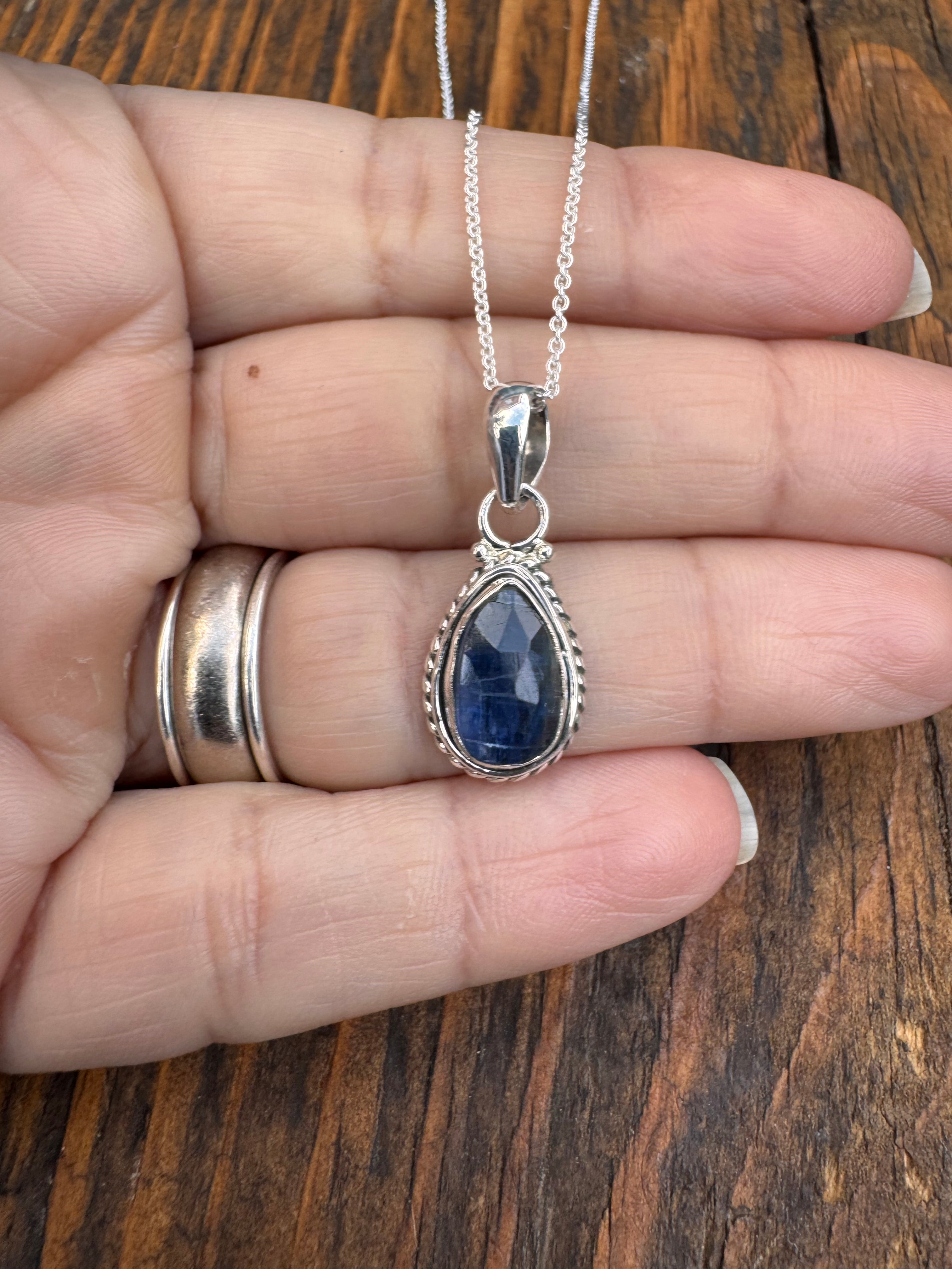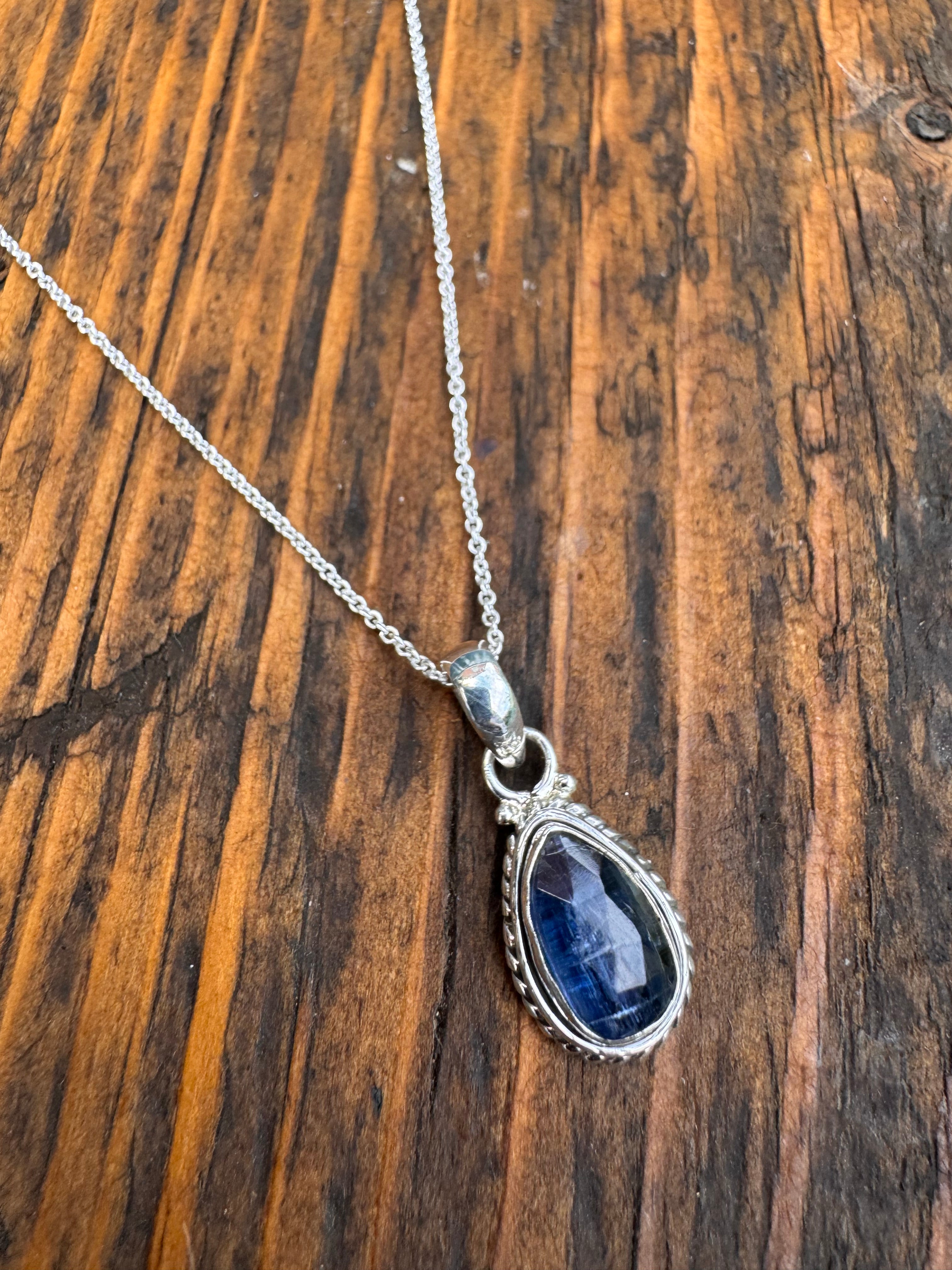 Faceted Kyanite Teardrop Silver Pendant Necklace