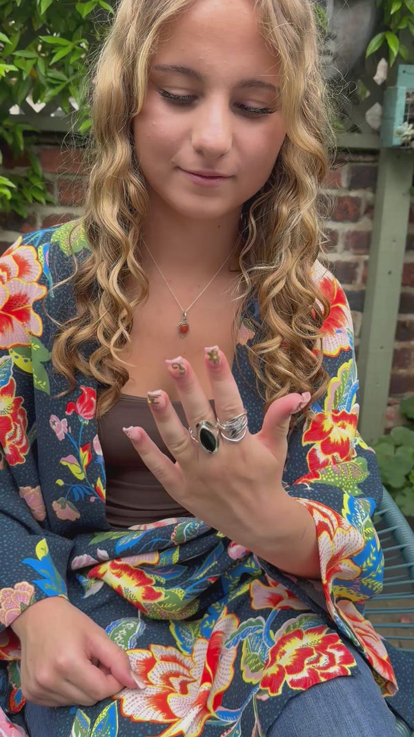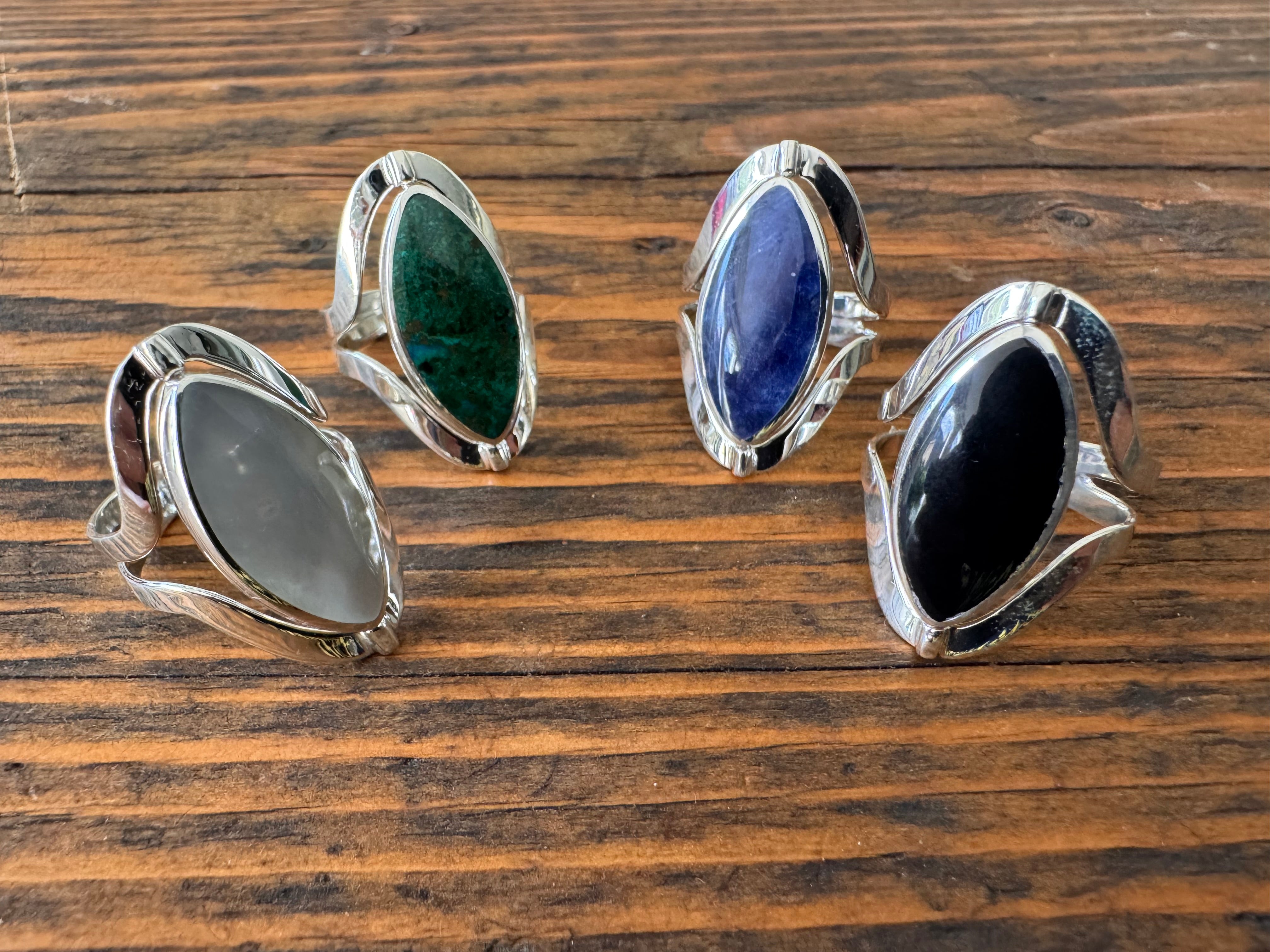 Reversible Gemstone Ring- Sterling Silver-Adjustable