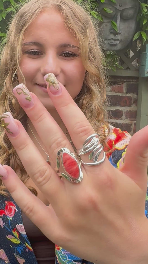 Full Finger Sterling Silver Botanical Leaf Ring