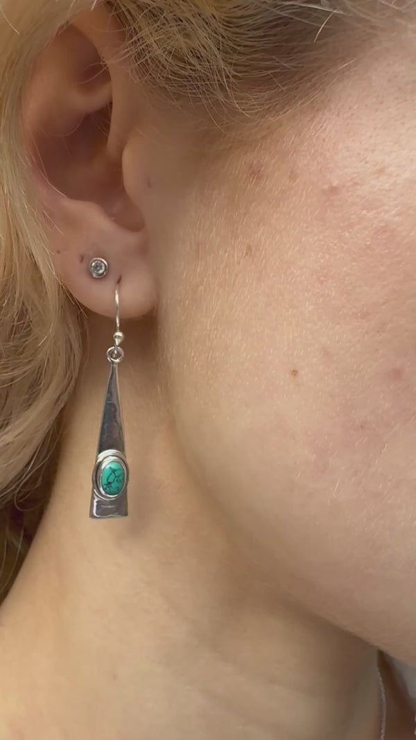 The elegant elongated triangle design gives these earrings a modern and minimalist look especially with the Turquoise in contrast with the silver.