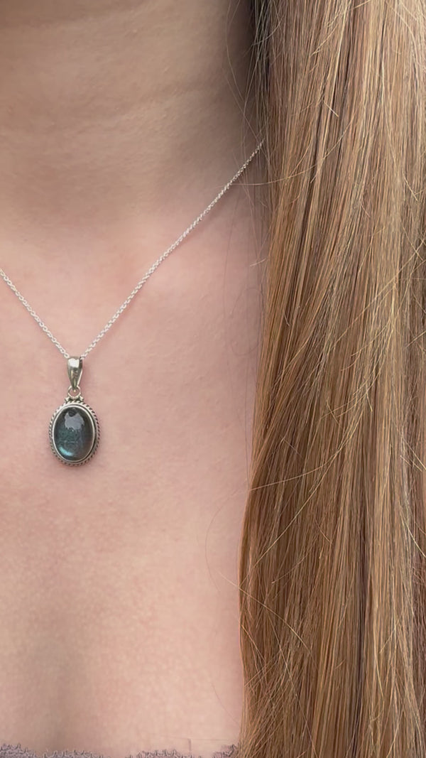 Labradorite Bohemian Oval Sterling Silver Necklace