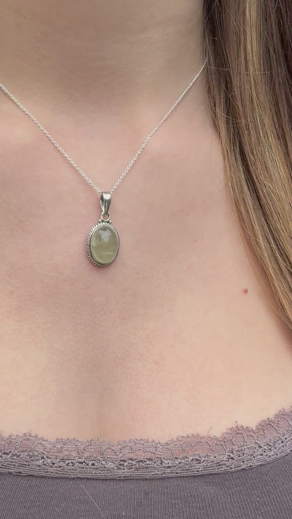 Prehnite Oval Bohemian Sterling Silver Necklace